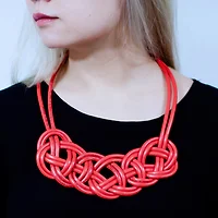 The necklace is flexible and very light, measuring at 1 mm thick, it uses a strong plastic. The cord can be changeable or chosen when you purchase it.